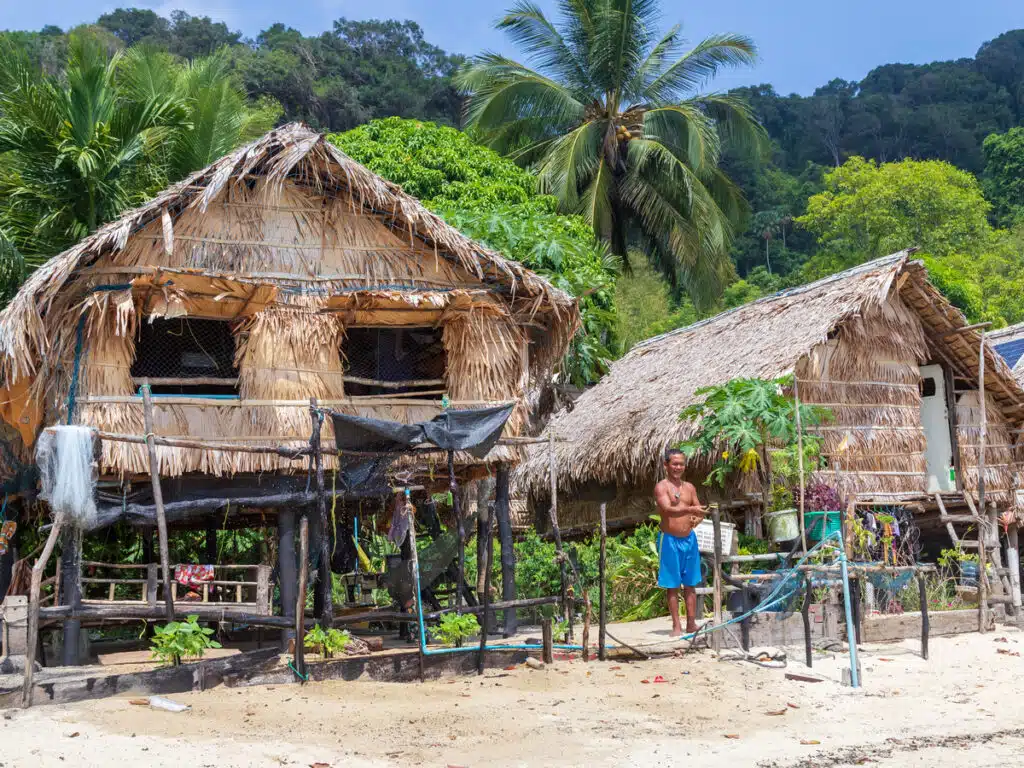 Your adventure begins with a snorkeling session off both islands, immediately immersing you in the region’s captivating underwater life. Your journey then takes you to the island inhabited by the Moken, a people of maritime nomads from Southeast Asia who found refuge on the Surin Islands after the 2004 tsunami. Deeply rooted in animism, they depended mainly on fishing and natural resources for their livelihood. Aboard their boats called kabongs, the Mokens sailed the Andaman Sea for most of the year. During the monsoon season, families would set up temporary villages on beaches as needed. Since the tsunami, the Moken village of Surin has become permanent, marking a shift to a semi-nomadic or sedentary lifestyle. Explore this fascinating history with our English-speaking guide, discover their unique way of life and meet their endearing children.